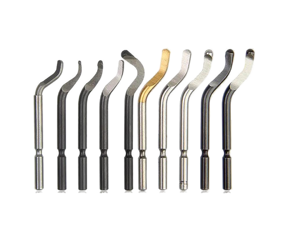 刀頭采用M2高速鋼材質,硬度達到62-64HRC,適用于內徑1-6.3mm的圓孔倒角,倒角角度為90度,設計緊湊,重量僅12克,便于操作和攜帶,可高效去除毛刺,加工表面質量高
